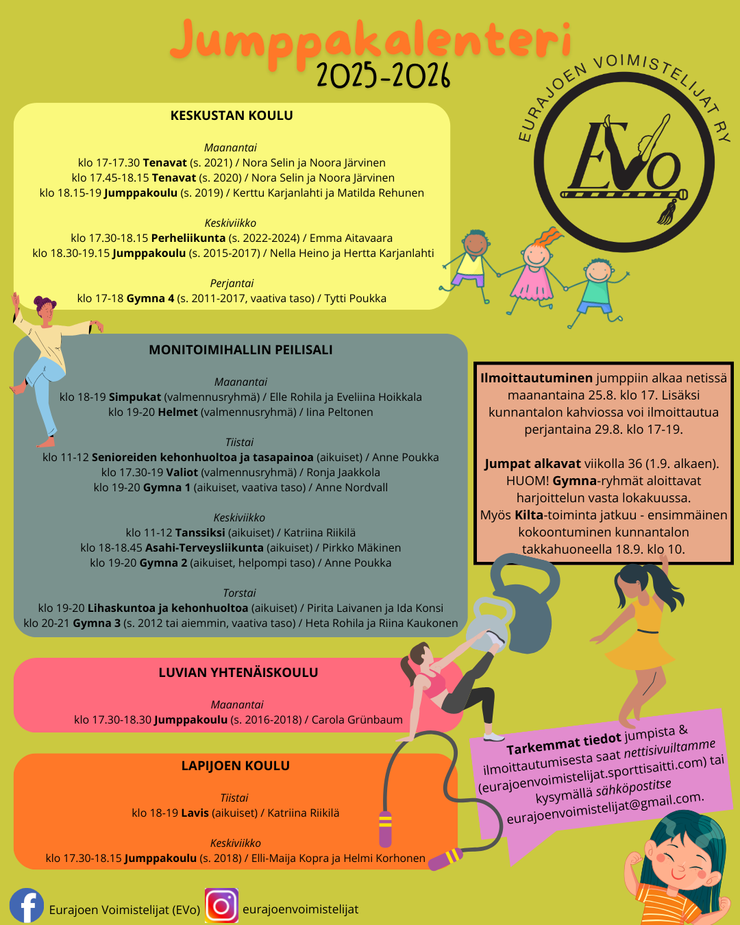 klo 18.30-19.15 Jumppakoulu (s. 2015-2017) / Nella Heino ja Hertta Karjanlahti TÄYNNÄ!
